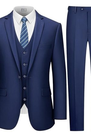 LUPURTY Men's Suits Slim Fit, 3 Piece Suits for Men, 2 Buttons Solid Jacket Vest Pants, Tuxedo Set for Business, Wedding
