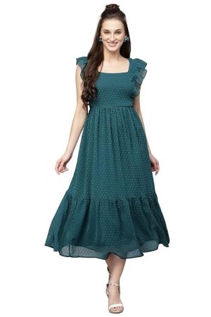 Sugathari Georgette Jacquard Butti Square Neck Knee Length Western Dresses for Women (Dress2 89)