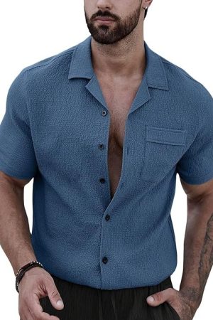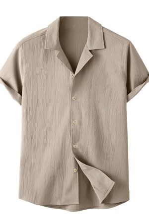 CB-COLEBROOK Men's Casual Button Down Shirts Long Sleeve Linen Shirt Fashion Textured Beach Summer Shirts