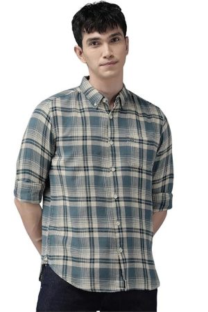THE BEAR HOUSE Men's Checked Slim Fit Flannel Casual Shirt | Blue & White | TBH-BASTA-BL