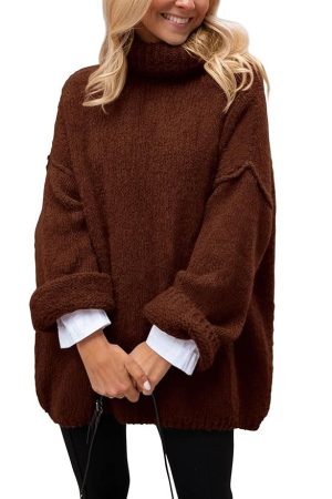 PRETTYGARDEN Women's Knit Oversized Sweater Fall Fashion Casual Long Sleeve Turtleneck Chunky Pullover Tops Winter Clothing