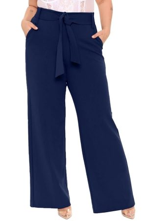 Plussclub Women's Trousers Plus Size Wide Leg Western Stylish Belted Palazzo Pants