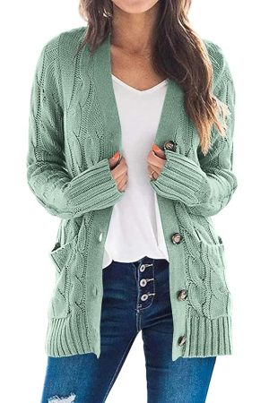PRETTYGARDEN Women's Open Front Cardigan Sweaters Fashion Button Down Cable Knit Chunky Outwear Coats