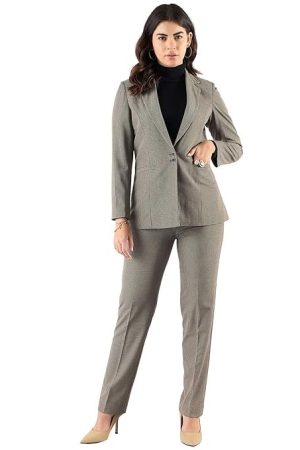 Powersutra Women’s Formal Checkered Blazer and Trouser Set | Notched Lapel Blazer with Tailored Mid-Waist Pants | 4-Way Stretch, Breathable, Wrinkle-Resistant Suit