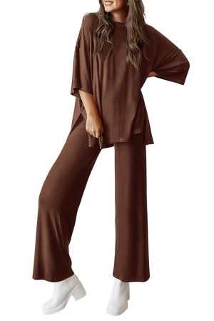 PRETTYGARDEN Women's 2 Piece Outfits Casual Short Sleeve Pullover Tops and Wide Leg Pants Lounge Sets Tracksuits