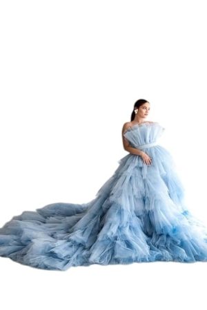 ThreadTexture Long Train Puffy Ruffel Ball Gown