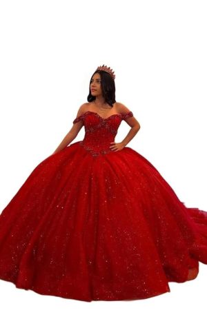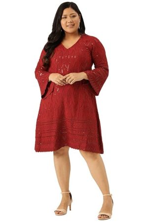 theRebelinme Plus Size Women's 4714QC_Red Solid Color Embroidered & Sequinned A-Line Dress
