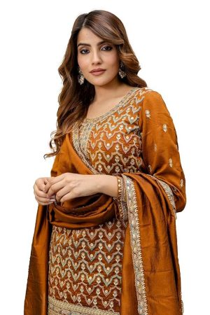 TRENDMALLS Women's Art Silk Sequins Embroidery Salwar Suit Set Kurta Sharara with Dupatta Kurta Palazzo Set