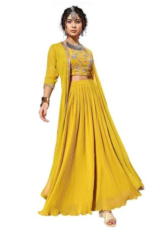 TRENDMALLS Women's Georgette Embroidery Crop Top with Flared Palazzo and Shrug Set