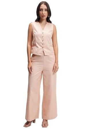 Tokyo Talkies Women's Tailored Waistcoat & Flared Trousers Co-ord Set | Sleek & Sophisticated | Trendy & Versatile