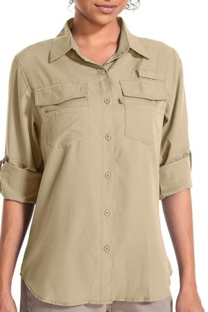 Toomett Long Sleeve Shirts for Women Hiking Fishing Safari Camping Travelling Button Down Quick Dry Convertible to Short Sleeve,F5026,Khaki