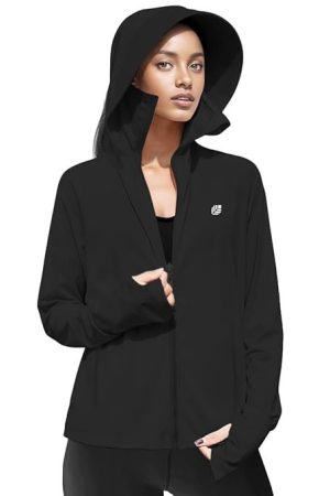 Venzina® Women's UPF 50+ Lightweight Athletic Jacket UV Sun Protection Full Zip Cooling Hoodie Long Sleeve Sunscreen Protective Clothing for Women for Outdoor Hiking, S-XL