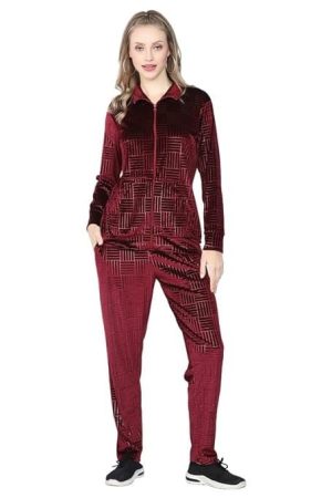 TRYLO Riza Women's Supersoft Velvet Fabric Full Sleeves Printed Night Suit Set for Winter Wear