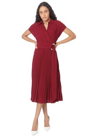 VERO MODA Women Cap Sleeves Fit & Flare Midi Dress with Belt