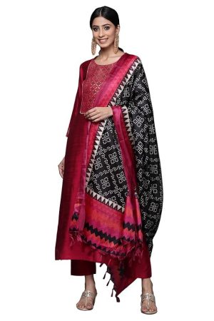 TRENDMALLS Women's Silk Embroidery Kurta Pant Set with Banarasi Dupatta