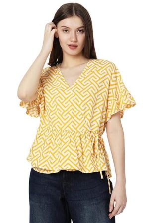 VERO MODA Printed Viscose V Neck Women's Top