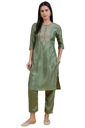 W for Woman Embroidered Straight Kurta and Straight Pants Set