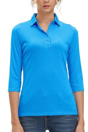 Women's Soft 3/4 Sleeve V Neck Golf Shirt Long Mositure Wicking Performance Sports Polo T Shirt Tops for Women, 12141# Blue, X-Large