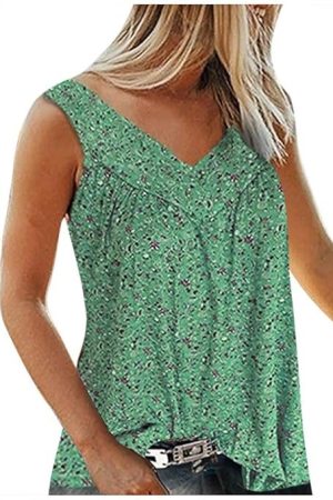 Women Sleeveless Stylish Latest Printed V-Neck Top Regular Fit T-Shirt