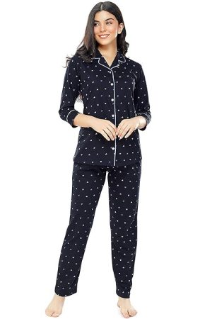ZEYO Women's Cotton Heart Printed Night Suit set of Shirt & Pajama