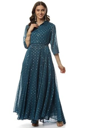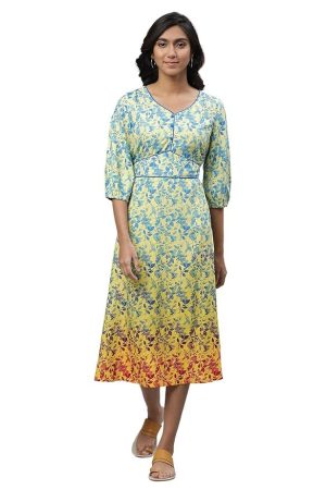 BIBA Women Fit and Flare Below The Knee Art Silk Flared Printed Dress