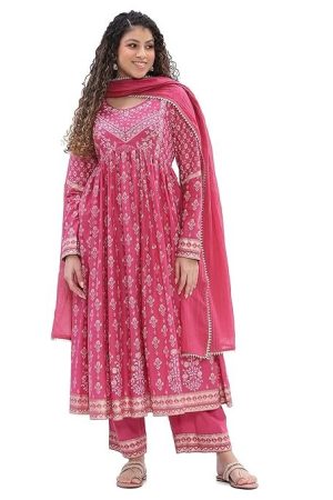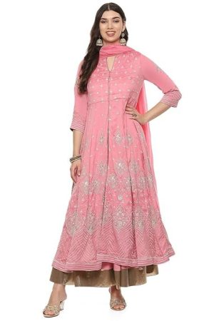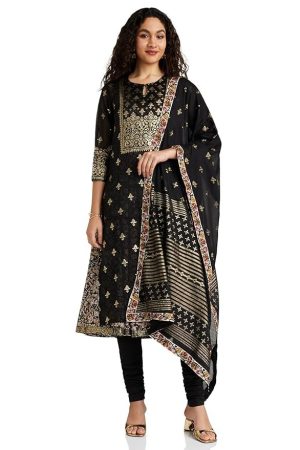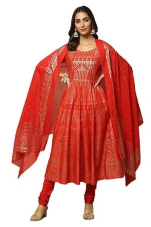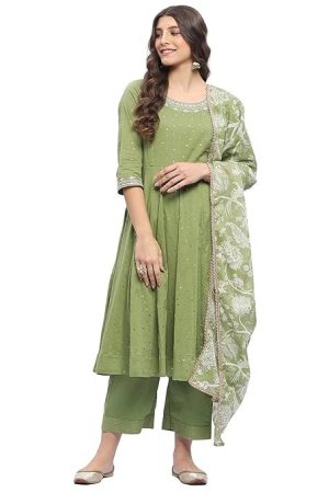 BIBA Women Cotton Anarkali Kurta Churidar Suit Set