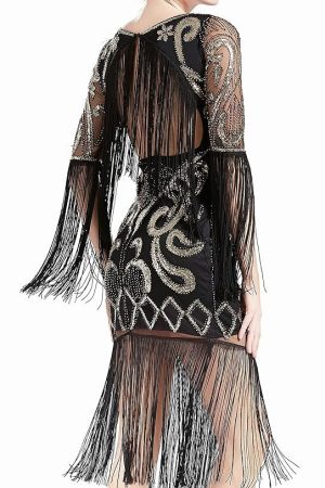 BABEYOND 1920s Flapper Dress Long Fringe Gatsby Dress Roaring 20s Sequin Beaded Dress Vintage Art Deco Dress