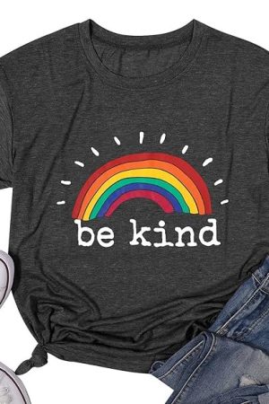 Be Kind Rainbow Shirts for Women Short Sleeve Letter Printed Inspirational Tee Shirts