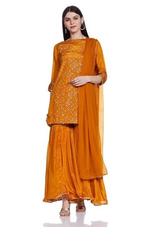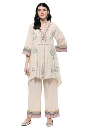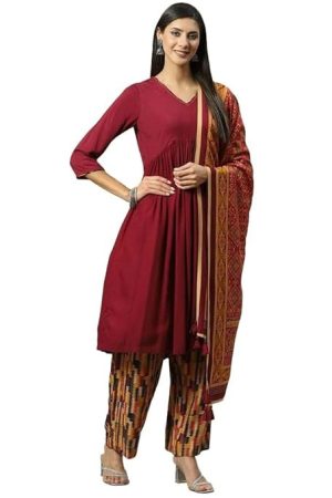 BIBA Women LIVA A-Line Kurta Palazzo Suit Set