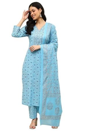BLOCKS OF INDIA Women's Solid Straight Kurta Set | Hand-Stitched Neck Details with Pintucks | Comfortable Pants with Pockets, Elastic Waist & Drawstring Fit