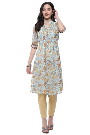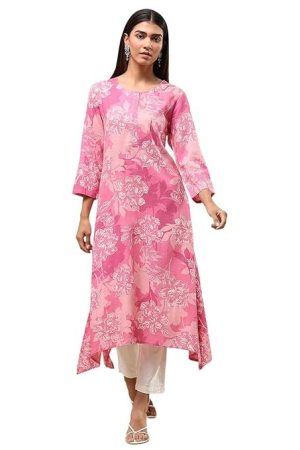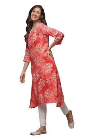 BIBA Women's 100% Rayon Printed Straight Kurta