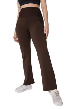 BlissClub Ultimate Flare Pants for Women Upto 5'4 ft | Ribbed Waistband, 4 Pockets | High Waist Trousers and Formal Pants for Office wear