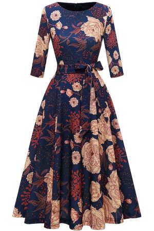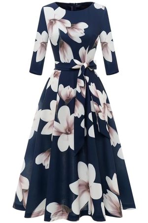 FableStreet Women's Formal V-Neck Green Marble Print Dress