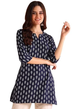 DSK Studio Women's Short Kurti in Black Rayon Cotton Blend | Ladies Ethnic Tunic | Office