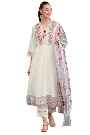 INDO ERA Women's Silk Blend Embroidered A-Line Kurta Pant with Dupatta Set
