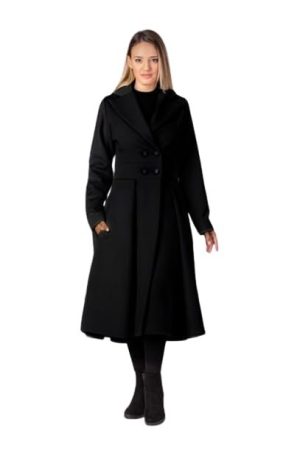 Jangid Fashion Winter Jacket for Women, Overcoat, Long Dress Coat, Full Sleeve Polyester Double Breasted Coat-Black