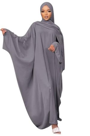 IKADEX Muslim Dress for Women Pakistani Kaftan Abaya Robe + Hijab Arabic Islamic Prayer Clothes Dubai Outfits
