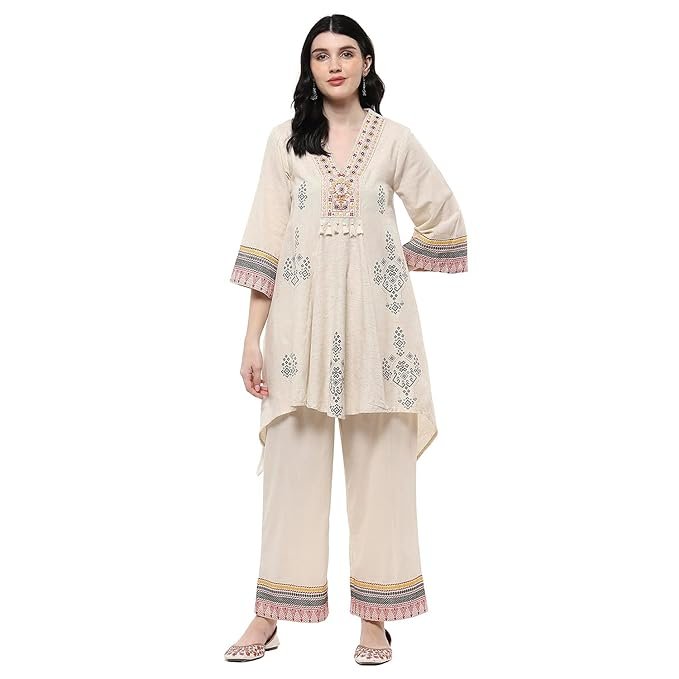 Home/Woman/BIBA Women Cotton Anarkali Dyed Suit Set
