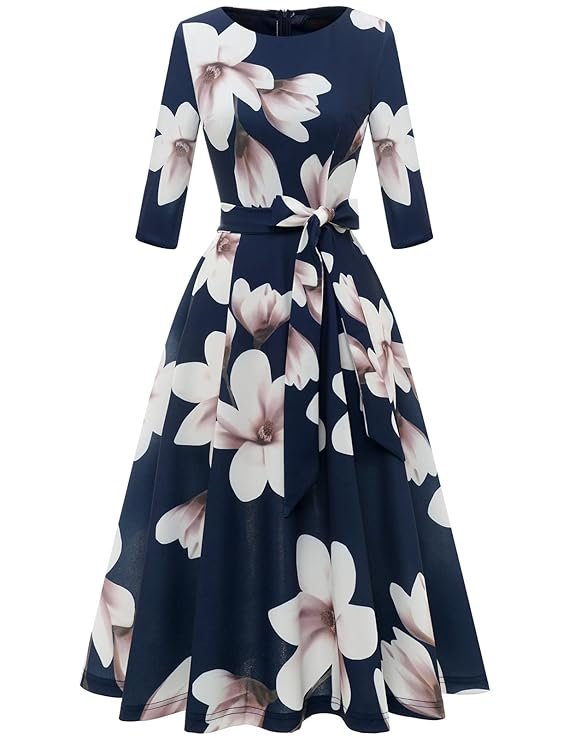 Elegant Wedding Guest Dresses: This fit and flare swing dress is perfect for daily work, which will help you balance your weekend fun and work dress needs. tea length, aline shape, decorative belt! All these designs are for your semi formal needs!