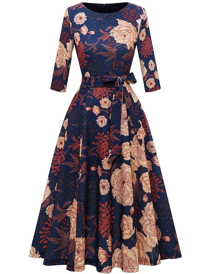 Elegant Wedding Guest Dresses: This fit and flare swing dress is perfect for daily work, which will help you balance your weekend fun and work dress needs. tea length, aline shape, decorative belt! All these designs are for your semi formal needs!