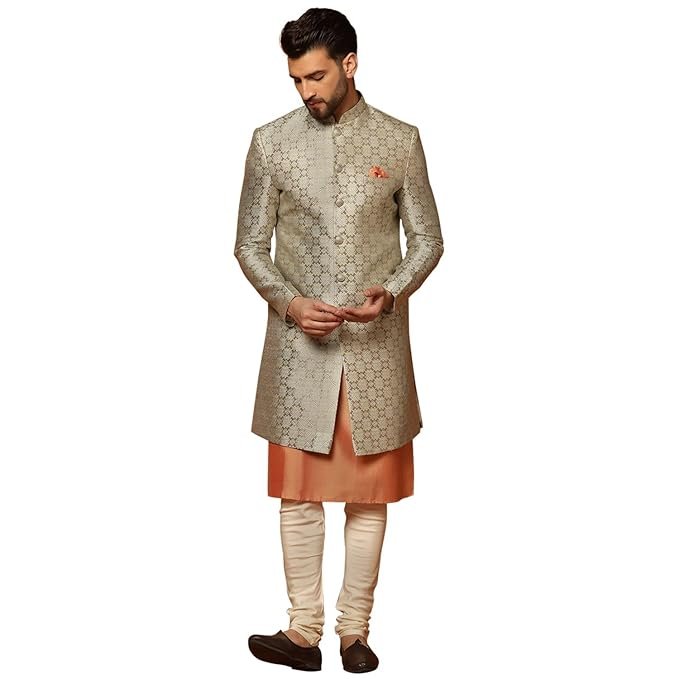 • HAND MADE IN INDIA: Individually made by skilled artisans, each sherwani set is meticulously crafted and checked for finesse, ensuring exceptional quality.