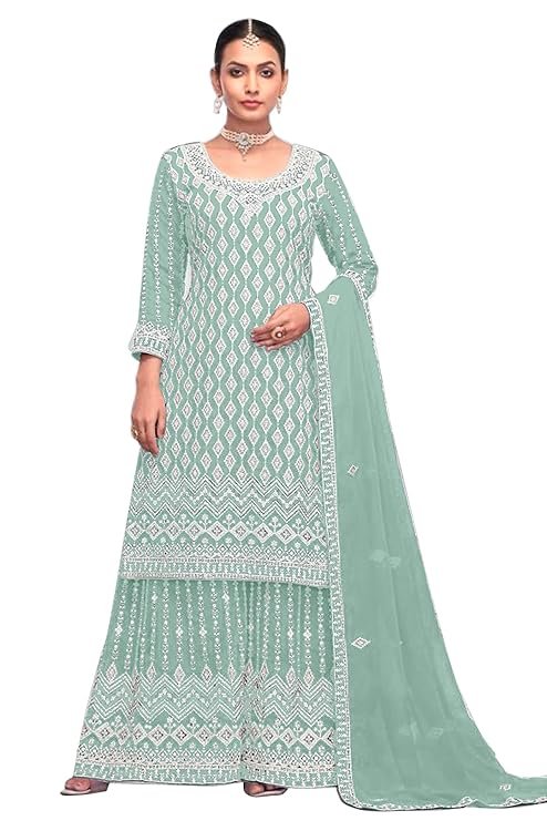 Be the first to review “SHAZIYA Designer Embroidered Georgette Sharara Suit for Women Ethnic Indian Dress with Dupatta Elegant Traditional Salwar Suit Set for Weddings” Cancel reply