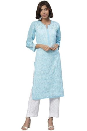 Ada Women's Hand Embroidered Lucknow Chikankari Georgette Kurta with Palazzo