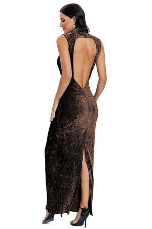 Aigeman Women Open Back Velvet Maxi Dress Halter Evening Gown Back Split Backless Bodycon Velvet Cocktail Dress 79