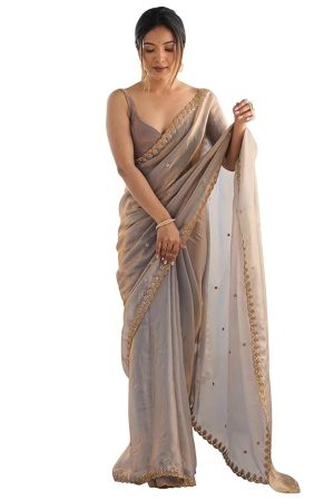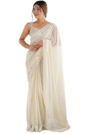 AKHILAM Women's Georgette Embellished Saree With Unstitched Blouse