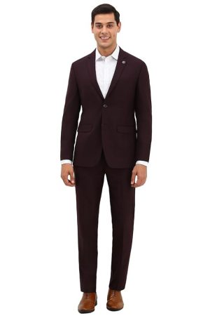 Allen Solly Men Maroon Slim Fit Check Formal Two Piece Suit