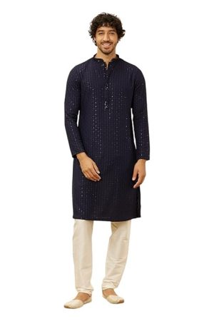 Manyavar Men's Viscose Chikankari Kurta Pyjama Set