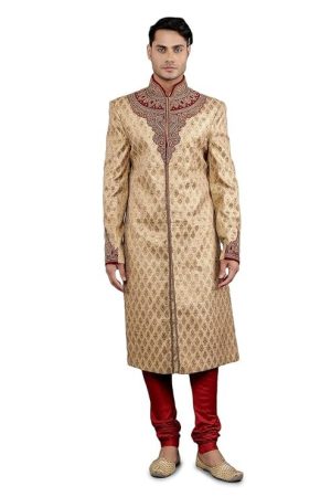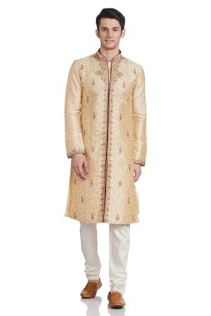 Manish Creations Men;s Embroidered Silk Blend Ethnic Sherwani Set