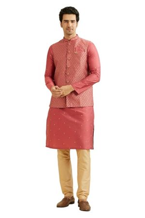 Manyavar Men's Art Silk Embroidered Kurta Jacket Pyjama Set
