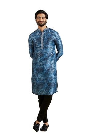 Manyavar Men's Art Silk Metallic Print Kurta Pyjama Set (2pcs)